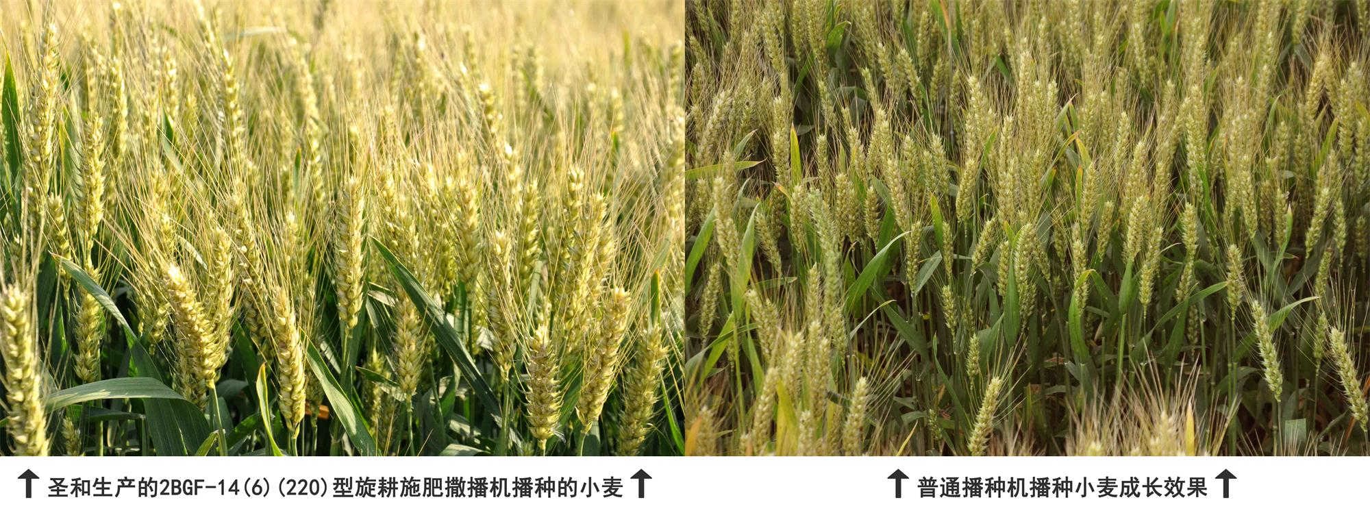 可眼下畢竟不是麥田怪圈,這即將收割在握的大片倒伏麥地,看著誰心里也沒個底了,咱們農民朋友的心無不哇涼哇涼的,恰巧今年在圣和新廠區的西邊大約五十畝的田地,用圣和公司生產圣和2BGF-14(6)(220)型旋耕施肥撒播機種植的小麥和普通田地的種植時間等各方面無異,今日小編特意前往觀看,這么大片的麥田卻與四周形成鮮明的對比,一株株精神抖擻,在微風的吹拂下金色的麥浪跌跌起伏。小編特意對比發現,使用圣和2BGF-14(6)(220)型旋耕施肥撒播機種植的小麥麥穗個個飽滿勻稱,堅挺的在肥沃的田地里等待著成熟豐收,絲毫沒有受此前狂風暴雨的侵襲,讓過路的行人忍不住多看兩眼,好奇的打問為什么這家的小麥安然無恙!