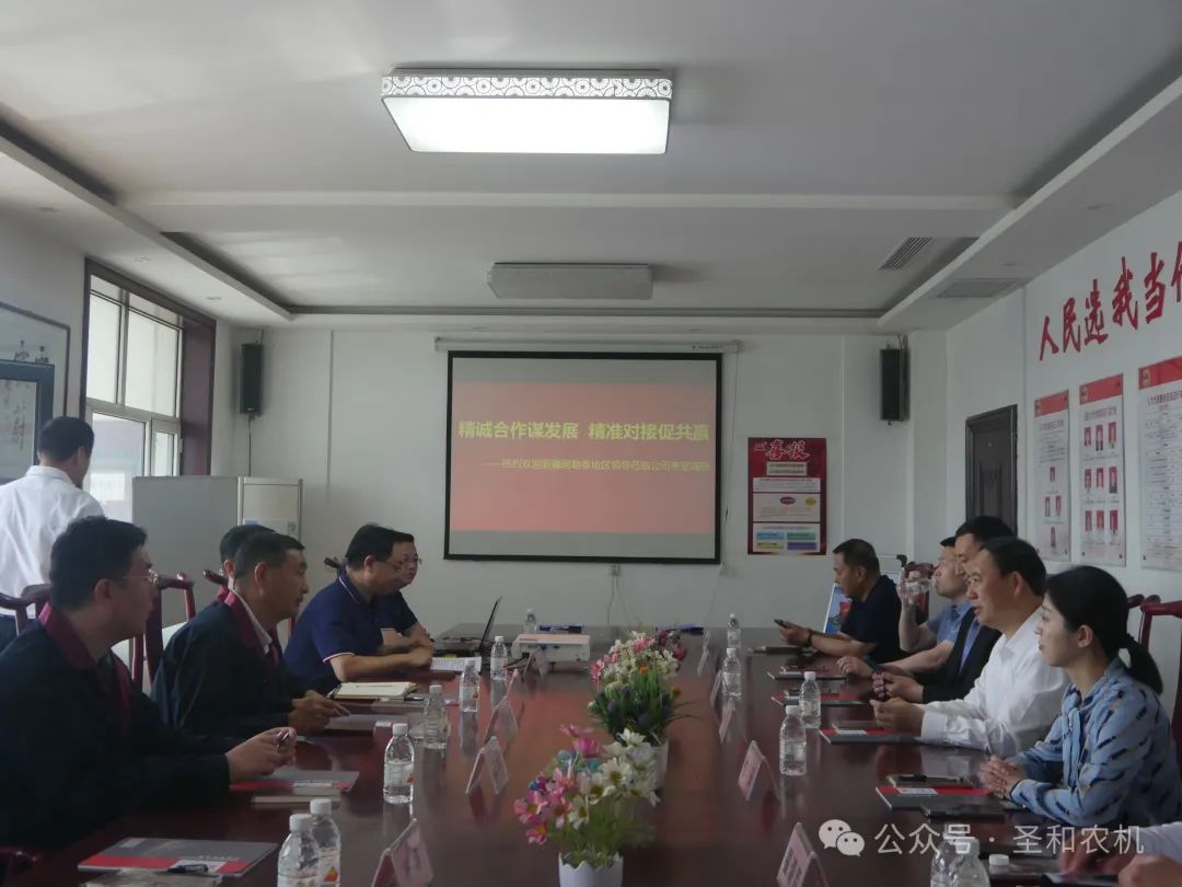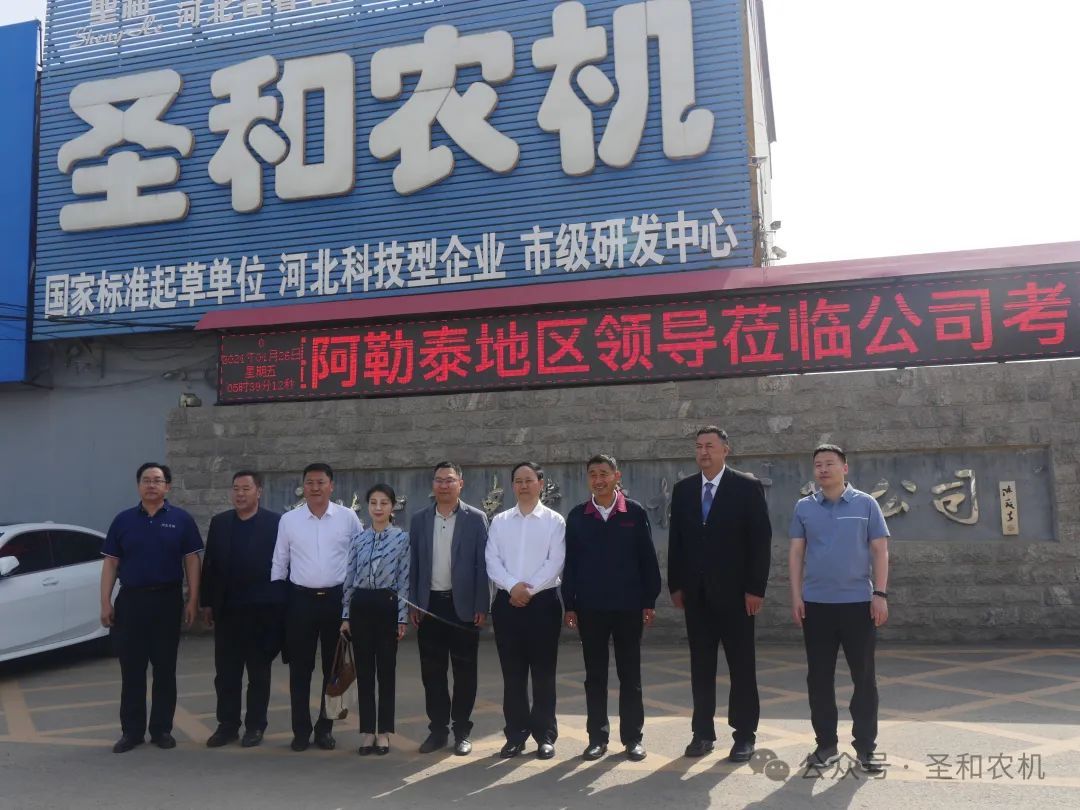 2024年4月26日新疆阿勒泰地委副書記、吉林援疆總指揮宋強帶領阿勒泰地區考察團一行到圣和公司進行考察調研。河北圣和農業機械有限公司董事長王新芳率領管理團隊進行了熱情接待。