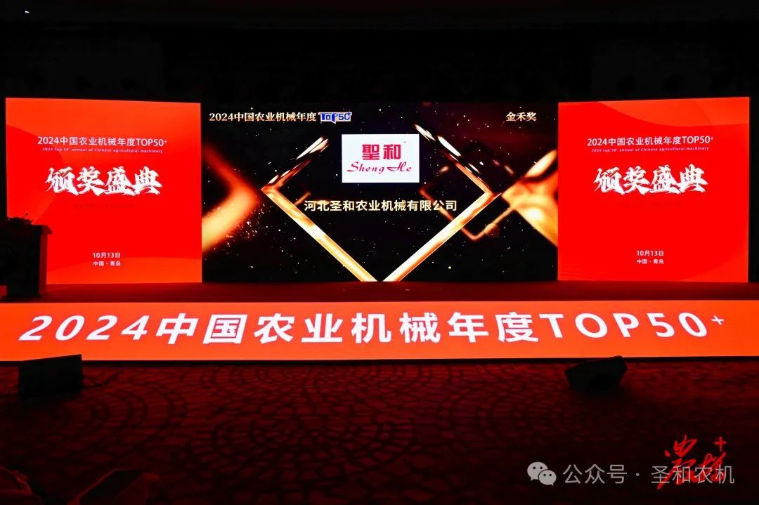 在“2024 中國(guó)農(nóng)業(yè)機(jī)械年度 TOP50+”頒獎(jiǎng)盛典上,圣和品牌再次蟬聯(lián)2024中國(guó)農(nóng)業(yè)機(jī)械年度TOP50+“金禾獎(jiǎng)”。