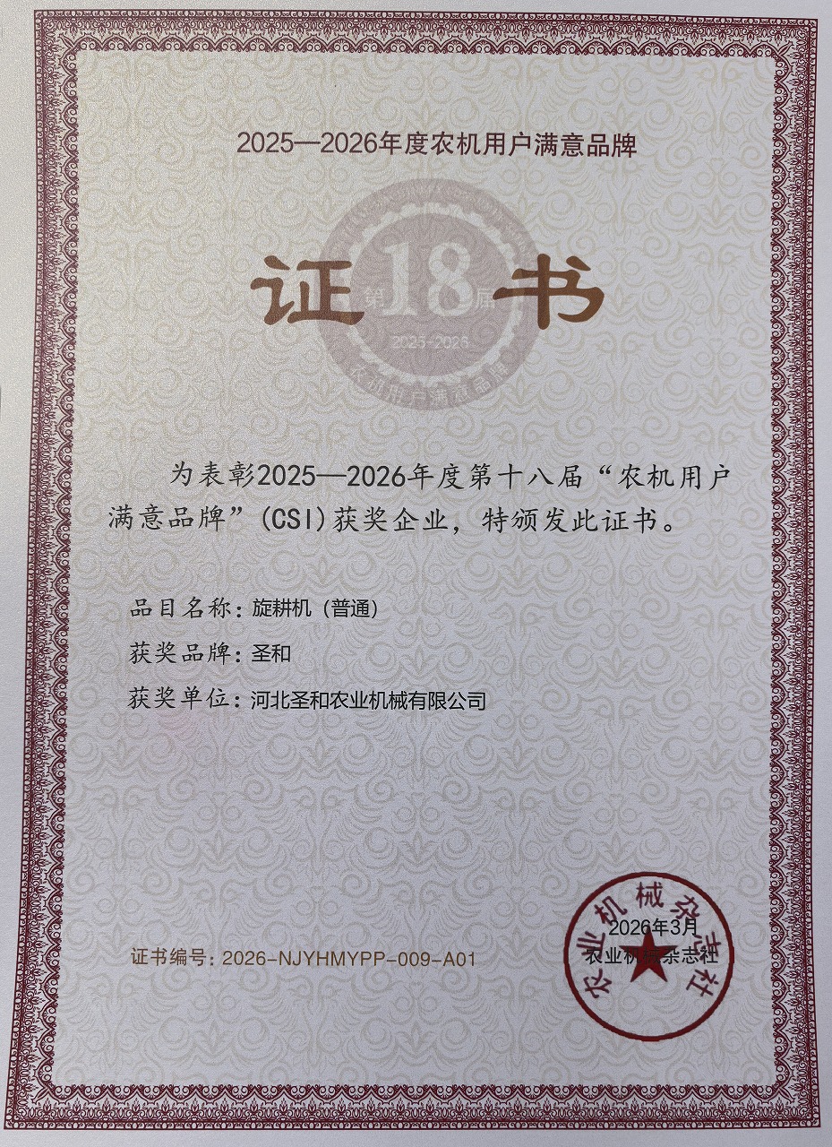 作為旋耕機領域的領軍品牌,河北圣和深耕農機行業多年,始終堅持以技術創新為核心驅動力、以用戶需求為根本導向,匠心打造每一款產品。旗下圣和牌旋耕機憑借結構堅固耐用、耕作高效均勻、質量穩定可靠的核心優勢,在全國各地區農業生產場景中廣泛應用,贏得了各地用戶的廣泛信賴與高度贊譽。此次參評,圣和牌旋耕機憑借 2025年全國懸掛式旋耕機銷量第一的市場實績,以及評選中銷售額指數、銷量指數雙滿分的亮眼數據,在眾多參評品牌中脫穎而出,再度摘得 “農機用戶滿意品牌” 桂冠。連續多年獲此殊榮,既是行業對圣和多年深耕細作、堅守品質的高度肯定,更是千萬用戶用實際選擇給出的最高評價。