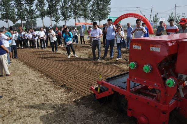 上午的秋播現場觀摩會在石家莊辛集市馬蘭農場舉行。上午9:30分,河北省修造總站副站長孫彥玲主持并宣布觀摩會開始,河北圣和農業機械產品撒播機進行了現場演示。圣和2BFSG-12(12)(200)深松旋耕施肥撒播機演示效果非常好即使在前一晚下過一場雨的濕濘土地效果也毫不遜色,接受從各地趕來的代表、專家的檢閱。受到與會者的一致認可與關注。