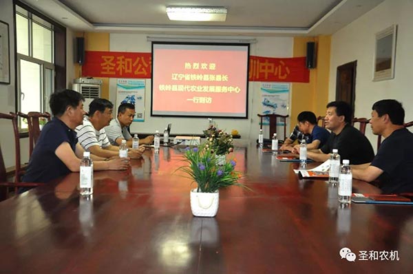 公司董事長王新芳先生及團隊熱情接待,并在公司會議室交流探討。公司董事長王新芳致歡迎詞,介紹了企業概況、發展理念和發展目標,雙方在祥和氣氛中對南北各地農業農藝及農民對農機具的市場需求和現狀差異與發展,尤其對東北當地現狀與發展前景進行深入探討。