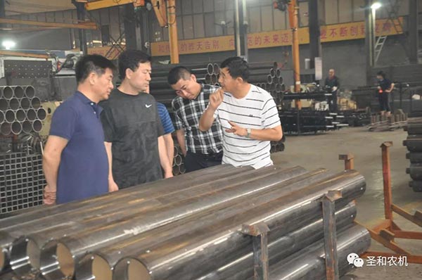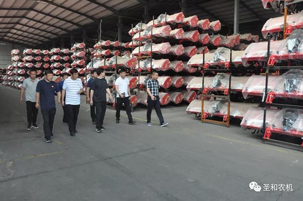 隨后進行工廠參觀考察,參觀的過程中董事長親自介紹每一個生產制作環節,對不同農機作用與特點詳細解說,參觀完畢后客人對河北圣和農業機械有限公司管理模式、生產工藝等給予高度評價。