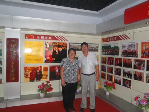 董事長(左一)與林媽媽(左三)和幾位朋友在事跡展廳前合影留念 董事長與林媽媽在她的事跡展廳參觀學習并合影留念